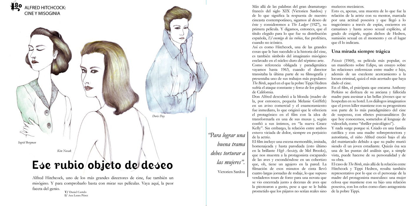 Notas: Detrás: Alejandra Pizarnik / Enfant Terrible, Lhasa de Sela / La princesa ligera, Tendencia kawaii / Sweety border, La pared del robo, Alfred Hitchcock / Ese rubio objeto de deseo, Pirí Lugones / La hija del torturador, la nieta del poeta, Suzy Solidor / La garçonne