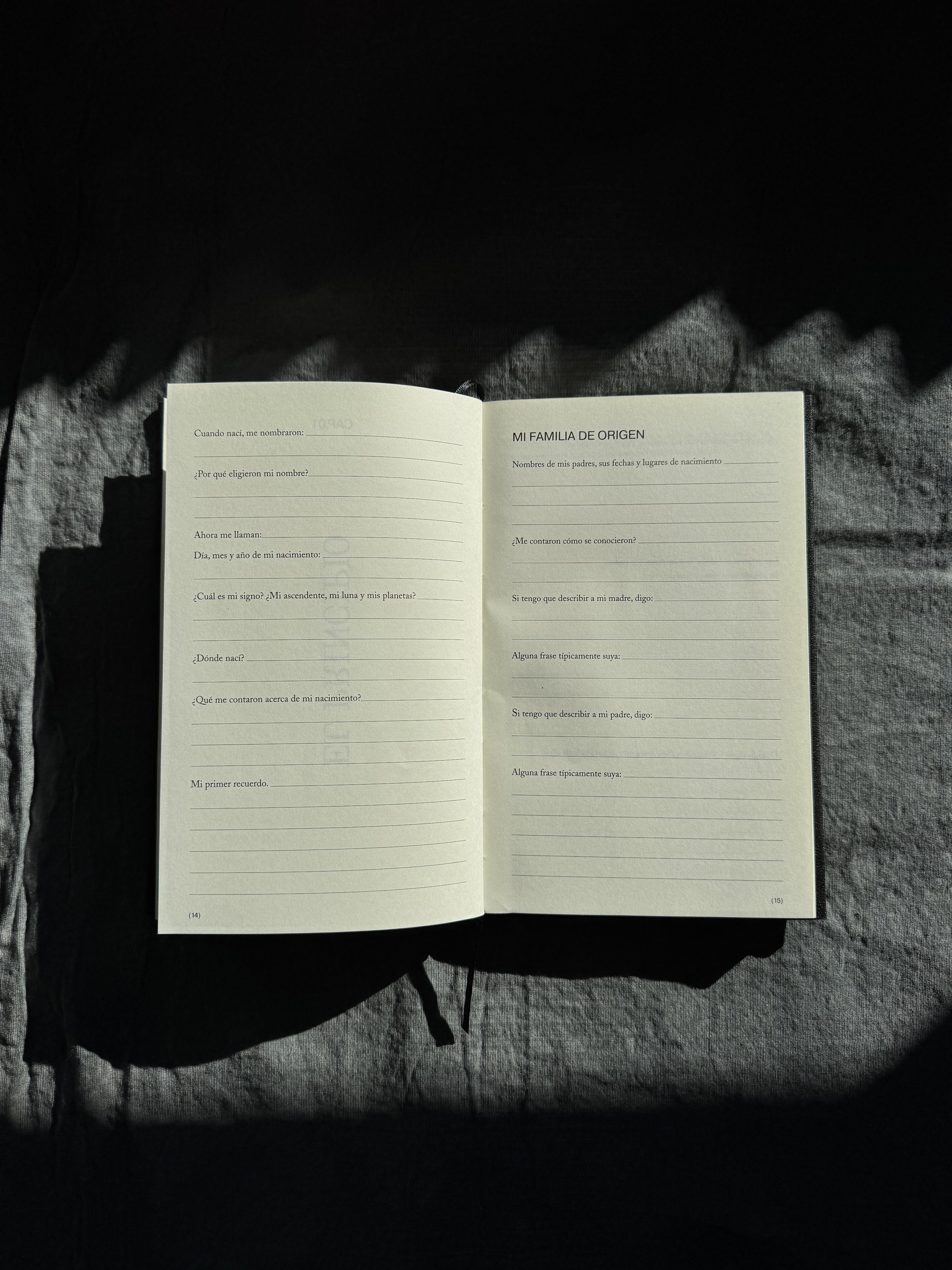 “Dejo estas palabras, junto a todas las huellas que pudo dejar mi persona”, dice al inicio, y después arrancan las preguntas que te irán guiando para contar tu vida.