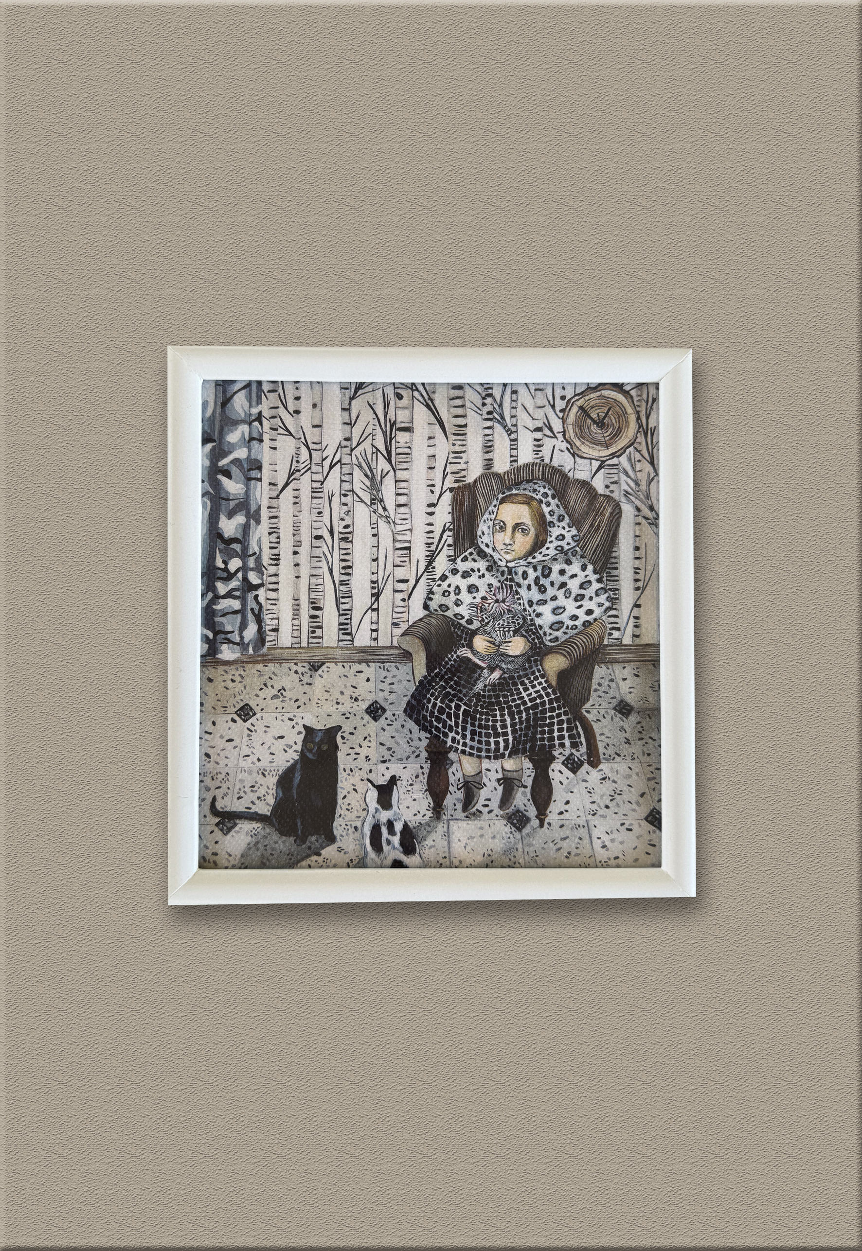 Reproducción de Niña con topo, óleo sobre papel de Verónica Gómez.